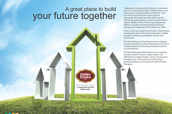 Vijayawada is a part of Andhra Pradesh Capital Region on the banks of the Krishna river and the head quarters of “APCRDA”. The city is one of the major trading and business centers of Andhra Pradesh, it is also called the business capital of Andhra Pradesh. Vijayawada the global city of future Andhra Pradesh now boasts of a new premium plot project. “Golden Empire” near Gannavaram.