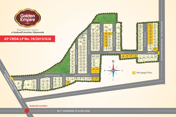 “Golden Empire” located centrally on the NH-5, 13km from Benz circle, the busiest access point of Vijayawada. “Golden Empire” will definitely be an ideal investor’s choice. The Layout “Golden Empire” is accompanied with set of distinct features and highlights. It’ll be one of the best & first few residential layouts among in and around Vijayawada. “Golden Empire” will set new trends and be complimented for what it’s thought – out as.